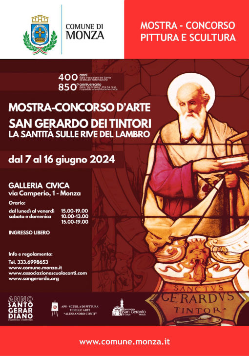 Mostra - Concorso dedicata alla figura di San Gerardo dei Tintori nella Galleria Civica di Monza (MB). Attraverso le arti figurative, la mostra rappresenta l’occasione per far conoscere il Santo ad un pubblico sempre più ampio, non soltanto per la sua importanza religiosa, ma anche per gli aspetti di grande valore storico e civile della sua figura di laico monzese.